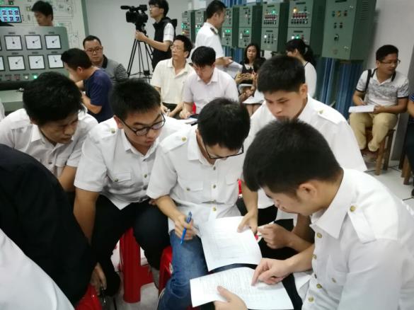 【航海工程系 讯】为了提高航海工程系教师队伍的专业素养和教学能力,本学期我系公开课活动拉开了帷幕。2017年5月5日上午,在航海实训楼轮机模拟器实训室内,轮机工程技术教研组黄兆牛老师进行了题为《船舶电站的并电和解列操作》(轮机工程2015班)公开课演示,并邀请航海工程系无限航区轮机长甘凌斌老师担任实训演示和操作评分。
