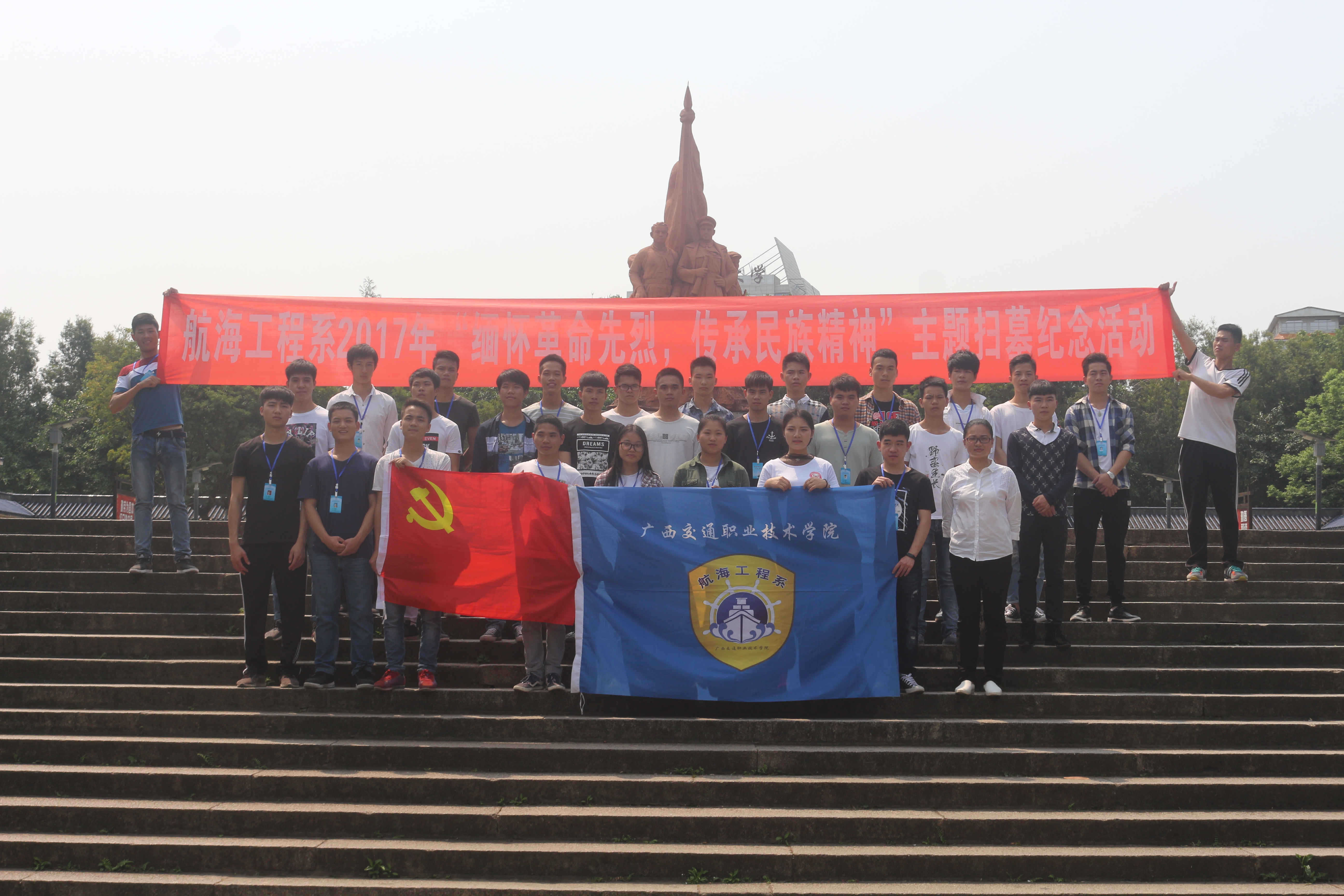(航海工程系 讯 )为缅怀革命先烈,弘扬爱国主义精神,激发优秀团员青年奋发向上。4月9日上午航海工程系教师代表、学生代表赴南宁市南湖公园李明瑞、韦拔群等同志百色起义烈士纪念碑开展清明祭扫活动。
