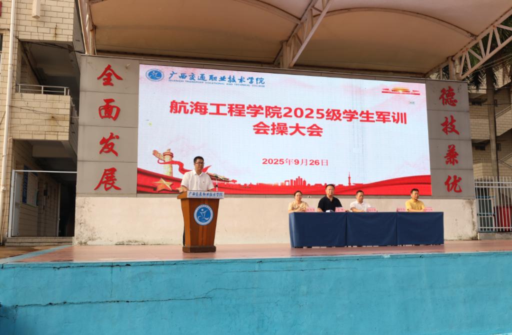 (航海工程学院 讯 梁卓悦/文)9月26日下午,航海工程学院2025级新生军训会操在相思湖校区田径场隆重举行。学校学生工作处副处长温干祥、学院党总支书记黄庆华、院长唐锋、副院长曾志伟及全体教官、辅导员、班主任出席大会,830名参训新生以昂扬姿态接受检阅。大会由学院党总支副书记黄月芬主持。