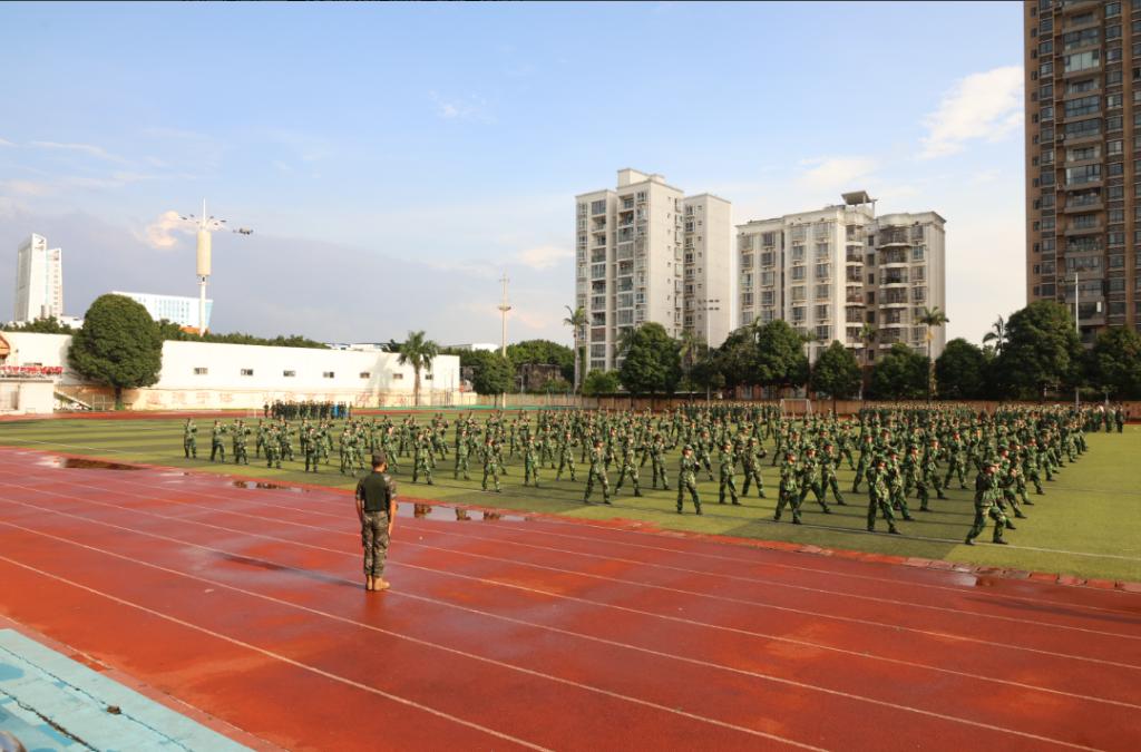 最后,黄庆华书记发表讲话。他向辛勤付出的教官、教师及工作人员致以诚挚感谢,并充分肯定全体新生圆满完成军训任务。