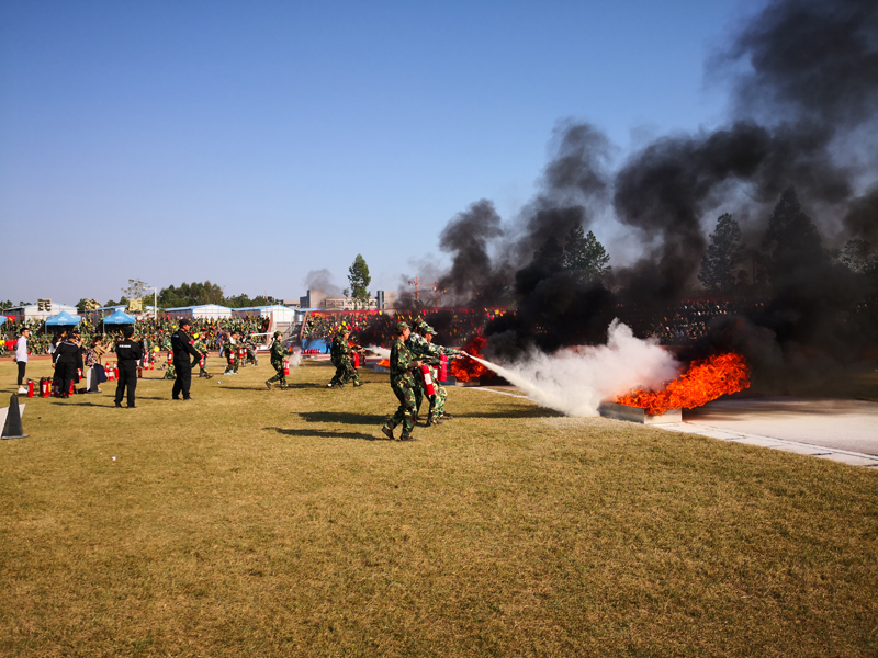本次演练作为第29个“全国消防日”大型活动之一,以“强化安全意识,掌握消防技能”为主题展开,主要分为三个部分:第一部分是消防安全知识讲座。后勤保障服务中心消防专职人员结合近年来高校消防安全事故,讲解火灾预防、安全用电、初起火灾扑灭以及火场逃生要领等。第二部分是应急疏散演练。全体新生按照演练预案,在接到疏散指令后,立刻用湿毛巾捂住口鼻,按既定逃生路线迅速逃离“火灾区”。整个疏散过程中,行动迅速,井然有序。第三部分是灭火实操。首先由后勤保障服务中心消防专职人员和义务消防队讲解和示范干粉灭火器使用方法、注意事项;然后各班代表分组参加灭火实际操作。活动过程中,师生们热情高涨,不惧烈日粉尘,纷纷主动参与。学校党委莫海燕副书记、学生工作处等领导亲自上阵,与演练师生们共同交流灭火体验。