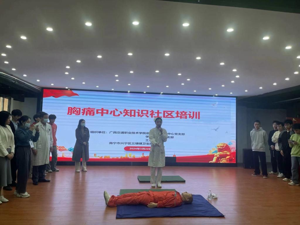 (后勤保障服务中心讯 杨继红 文/图)为深入贯彻党的二十大精神,倡导全社会关注结核病防治,3月22日,在第29个“世界防治结核病日”来临之至,后勤中心党支部、学工处党支部、工会党支部与三塘镇卫生院党支部在我校东区青年活动中心开展“你我共同努力 终结结核流行”党建共建主题党日活动,后勤中心副主任、支部书记李锦、副主任白克云、学工处副处长龙建强、黄庆华、三塘镇卫生院副院长冯以真及党员教师代表、学生代表共计100余人参加此次活动,活动由李锦书记主持。