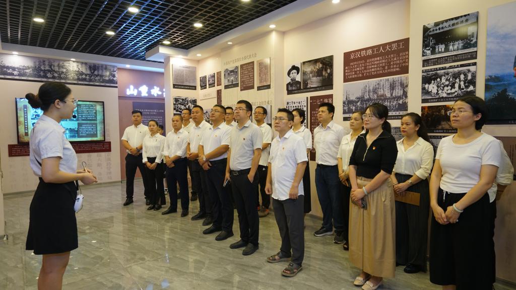 在党史工运史展陈厅,大家认真聆听解说员讲解中国共产党领导中国工人运动兴起、发展壮大和取得伟大胜利的历程,从“伟大开端”、“山重水复”、“抗日烽火”、“天翻地覆”四个篇章深入了解了从1919年到1949年中国共产党历史和中国工人运动历史所发生的重要历史事件以及老一辈共产党人、工人阶级解放广西、建设南宁的真实故事,重温了中国共产党百年光辉历程中的“工运记忆”。党员同志们深深体会到在党的领导下,工人阶级艰苦奋斗、不忘初心、筑梦前行的宝贵精神。