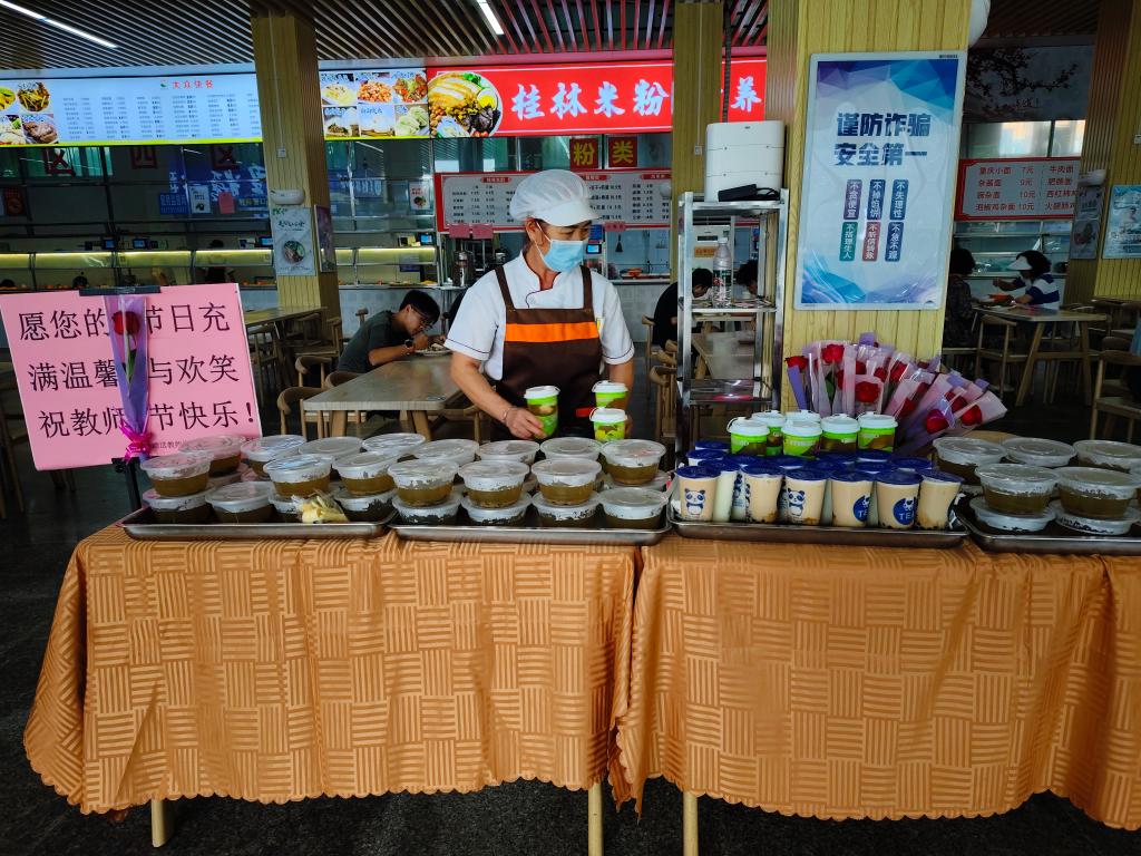 (后勤保障服务中讯 王宇冰文/图)9月10日,是第40个教师节,在这个充满感恩与敬意的教师节,我校昆仑校区、园湖校区各食堂、餐饮店精心筹备,开展了教师节感恩活动,以表达对教职工们辛勤付出的感激之情。教师节当天,各食堂、美食广场利用电子屏幕、悬挂宣传横幅等形式为教师“亮灯”,向教职工们送上节日祝福,营造了浓厚的节日氛围,让教职工们感受到节日的喜悦与幸福。