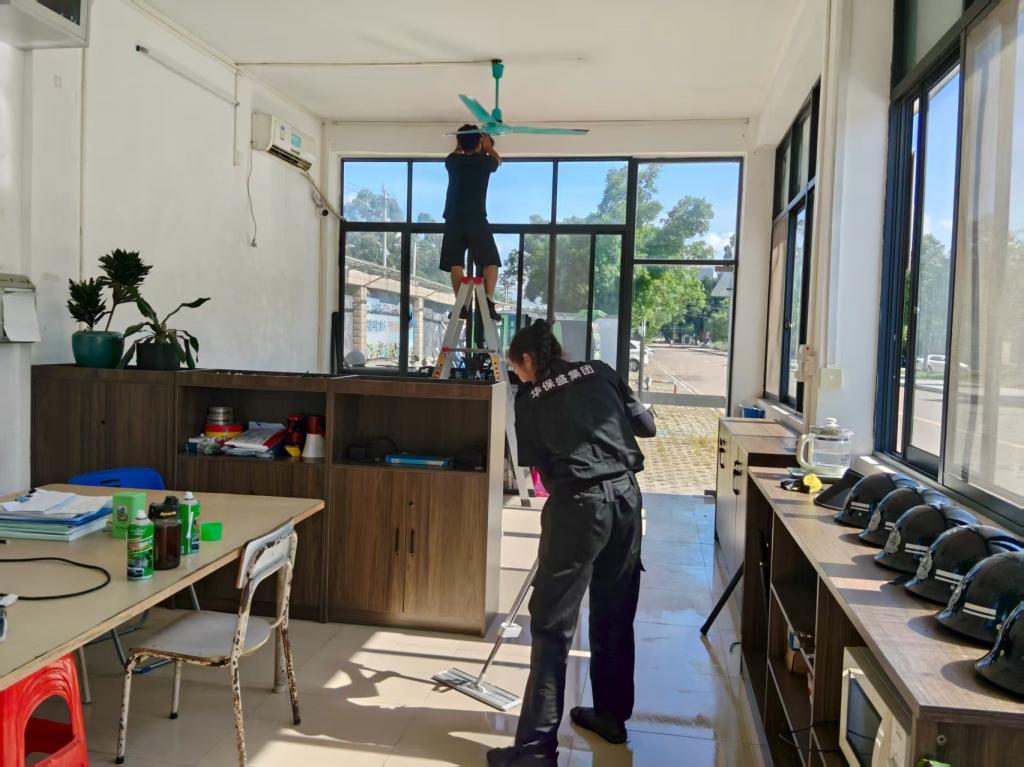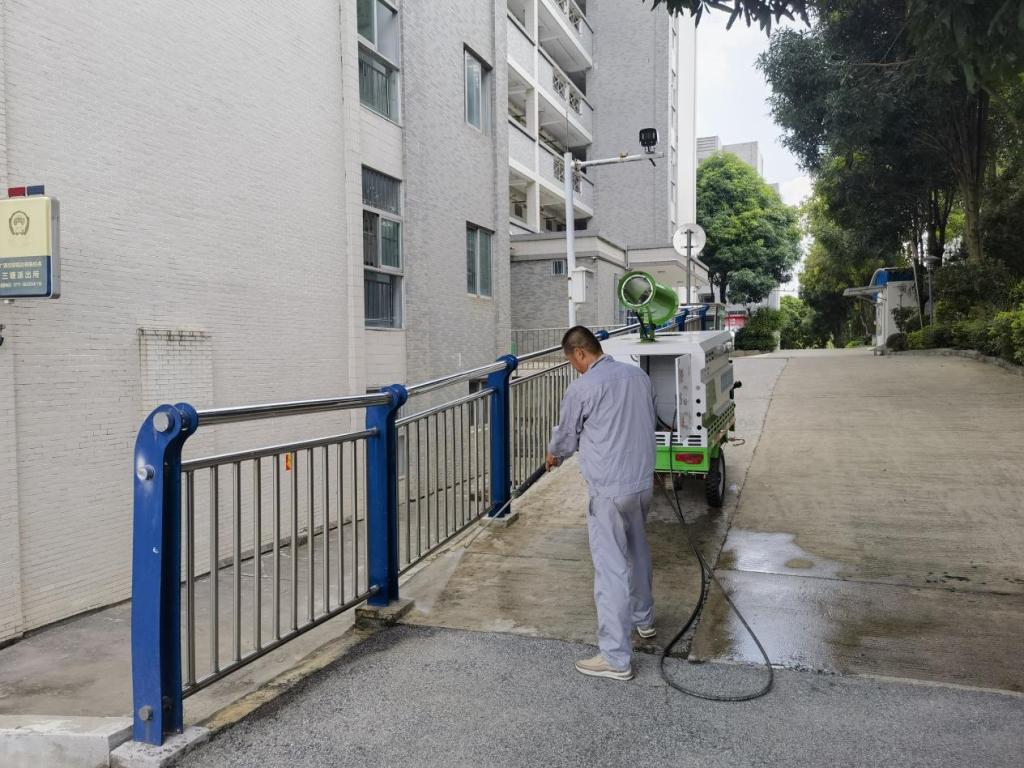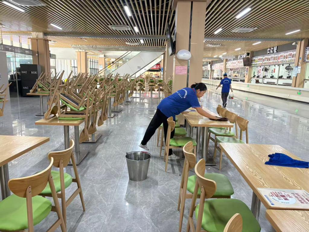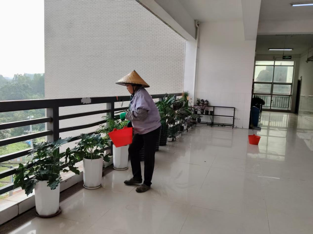 打造“绿水青山就是金山银山”的校园环境是我们一直推崇的发展理念。开学前,对各办公楼、教学楼、电梯、楼道、卫生间公共区域及教室、主干道、垃圾池等区域进行全面保洁消杀;针对容易忽视的卫生死角,如绿化带边缘、垃圾桶周边、墙角、下水道口等,开展了专项整治行动;组织保洁人员采用人工清扫和高压水枪冲洗相结合的方式,彻底清理卫生死角的垃圾、淤泥和污垢;组织物业绿化人员对校园内的树木、绿篱进行了全面修剪;对绿化区域进行科学灌溉,保证植被在开学前获得充足水分;开展绿植补植工作,按“地被密植、灌木间隔定植”规范栽种,覆盖裸露土地,设置专人专岗每日巡查、养护,升级局部景观;组织人员对校园内的积水区域进行了全面排查和清理,重点清理了花盆托盘、下水道、排水沟、积水坑、废旧容器等容易滋生蚊虫的场所;对校园内绿植、树木、草坪进行一次全面的养护;同时对校门口、东区宿舍进行摆放盆栽装饰,为校园环境“增彩添绿”。