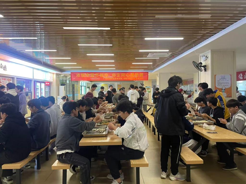 (后勤保障服务中心(保卫处)讯 王宇冰 文/图)为传承中华优秀传统文化、凝聚师生集体情感、营造团结和谐的校园氛围,近日,后勤中心党支部联合团委党支部在昆仑、园湖、相思湖三校区食堂同步举办“浓情冬至齐相聚 师生同心话团圆”主题党日活动。学校副校长戴晓云、后勤中心党支部及团委党支部全体党员、教师代表、各二级学院学生代表及食堂员工代表欢聚一堂,以共包饺子、同品汤圆的温馨形式,沉浸式感受冬至节气的文化魅力,共话师生同心的团圆情谊。