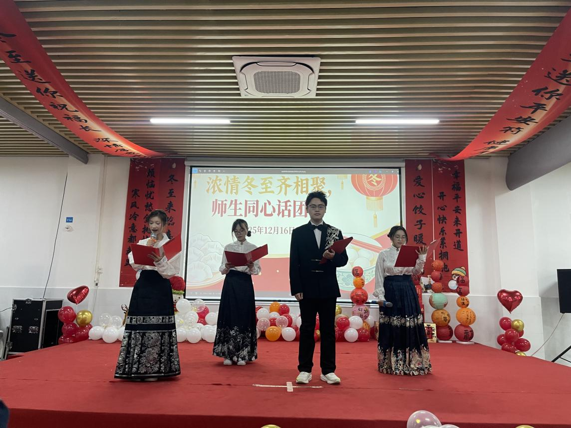 活动伊始,戴晓云副校长向现场全体师生员工致以冬至佳节的诚挚问候与美好祝福。他表示,冬至作为中华民族数千年流传的传统节气,不仅承载着“阴极之至,阳气始生”的自然智慧,更凝结着“阖家团圆、守望相助”的文化基因,是涵养家国情怀、传承中华文脉的重要载体。同时,他希望同学们以此次活动为契机,厚植文化自信,在传承中创新、在团结中奋进,成长为有温度、有情怀、有担当的交院学子;也期待全校上下继续以传统节日为纽带,凝聚起师生同心、砥砺前行的强大合力,共同描绘学校高质量发展的崭新篇章。