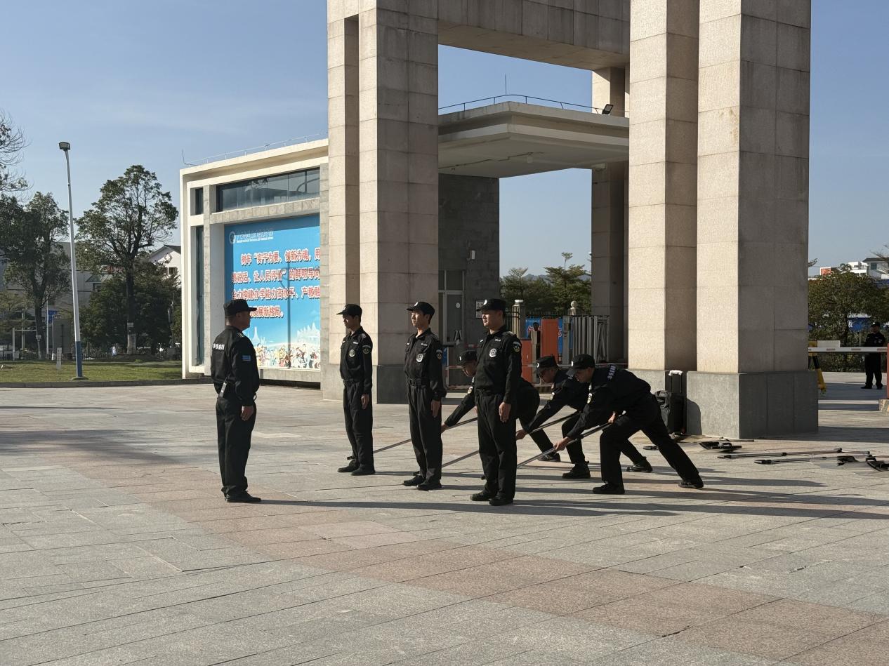 (后勤保障服务中心(保卫处)讯 高长亮文/图)为提升校园应对突发暴力事件的应急联动与处置能力,保障全校师生生命财产安全,近日,后勤保障服务中心(保卫处)联合三塘派出所、物业安保人员在昆仑校区北大门组织开展反恐防暴应急演练,各小组分工协作、密切配合,演练取得预期效果。