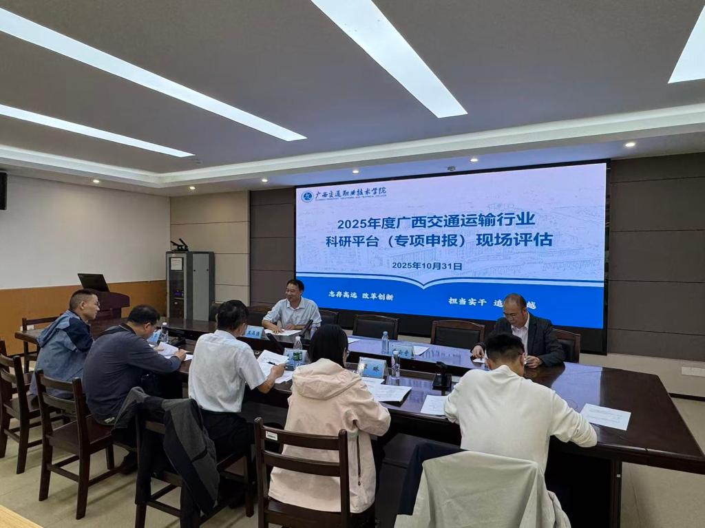 1031日,自治区交通运输厅来我校开展2025年度广西交通运输行业科研平台(广西交通职业技术学院专项申报)现场评估工作。评估专家现场实地核查了我校的低空多场景融合重点实验室重点实验室、北斗应用研发中心、交通绿色材料研发中心及数智公路养护技术研发中心,听取了上述科研平台简要汇报,并就汇报情况讨论形成现场评估意见。