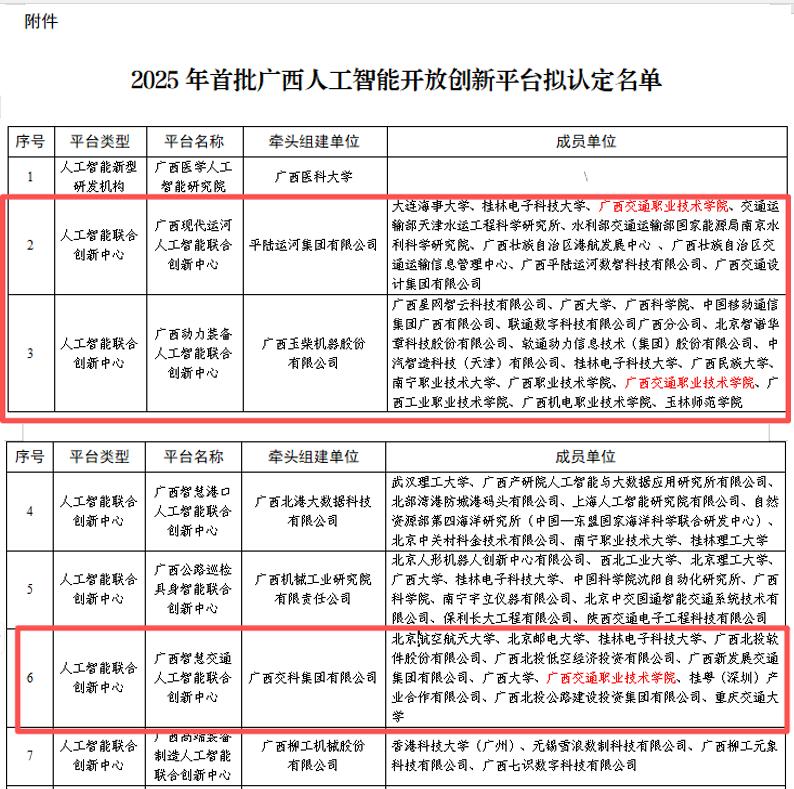 1031日,从广西壮族自治区科学技术厅《关于公布 2025 年首批广西人工智能开放创新平台名单的通知》(桂科发〔2025431号)传来喜讯:我校成功获得3个广西人工智能开放创新平台。