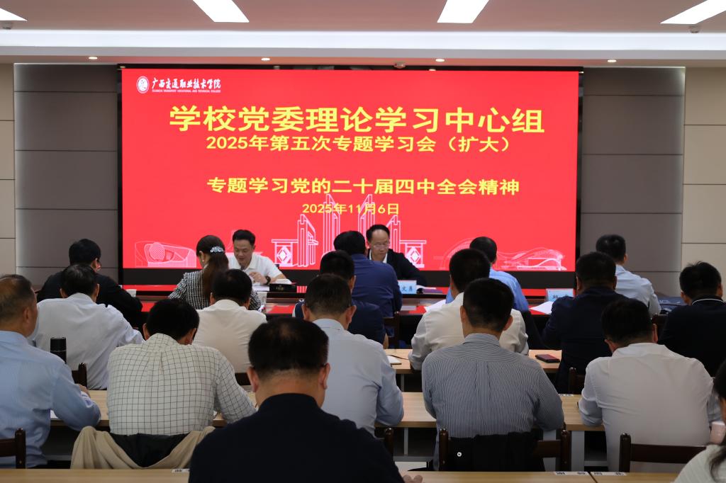 (党委宣传部 讯 梁静芸/文)11月6日,学校党委理论学习中心组2025年第5次专题学习会(扩大)在昆仑校区路桥楼519会议室召开,专题学习党的二十届四中全会精神。学校党委书记陈湘如主持学习会并讲话,校长李文勇,党委副书记陈海峰,党委副书记、纪委书记麻新桃,副校长黄云奇、戴晓云、邱实参加学习。