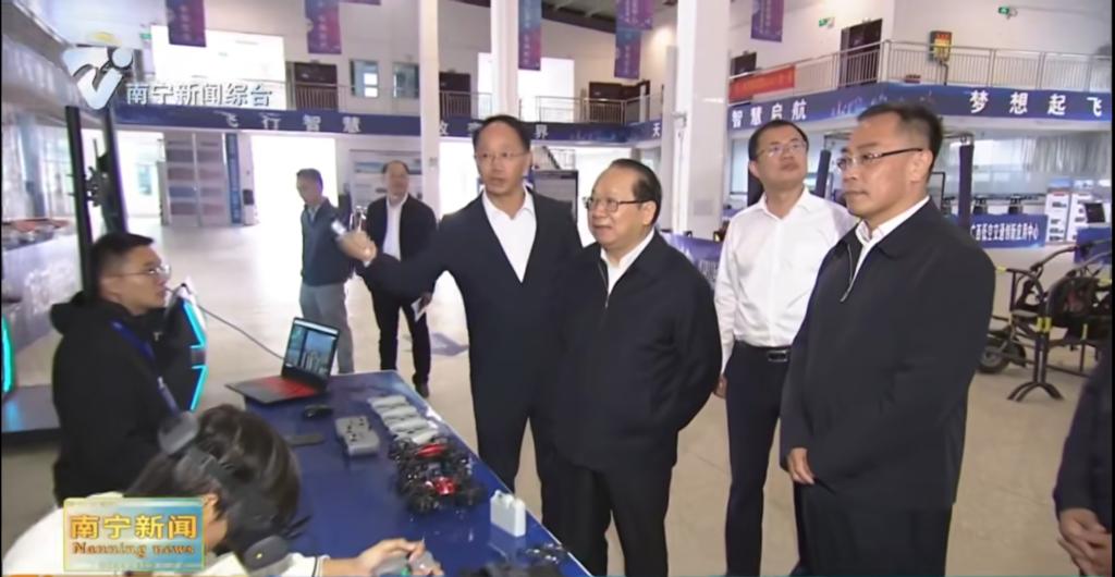 11月11日,自治区党委常委、南宁市委书记农生文到兴宁区调研,并莅临我校低空交通创新应用中心考察,校长李文勇陪同调研。