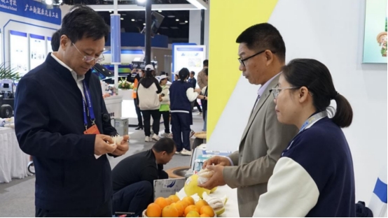 自治区人力资源社会保障厅党组书记、厅长,自治区党委组织部副部长(兼)唐标文(左二)一行到展位参观