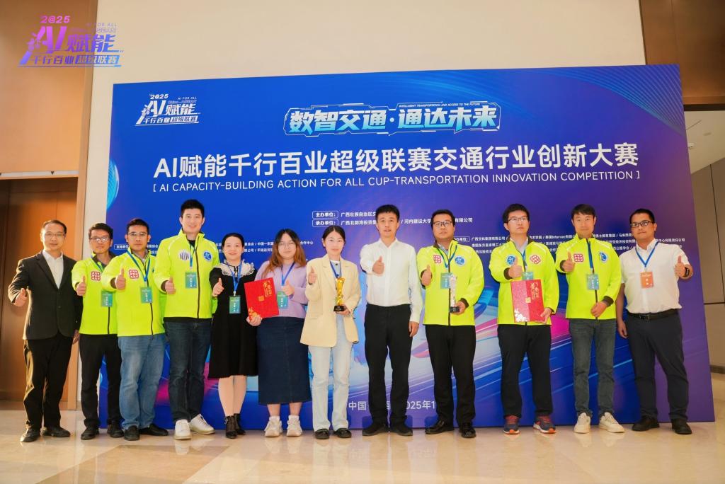 (科技与对外合作部 讯 罗俊懿/文)11月28日,由自治区交通运输厅主办的“2025AI赋能千行百业超级联赛(以下简称“A超”)交通行业创新大赛”闭幕式暨赛事颁奖仪式在南宁举行。学校参赛队伍从全国及东盟国家229支劲旅中突围,一举斩获1项银奖、1项东盟合作特色奖,另有9支队伍获优秀奖,充分展现了学校在技术研发与场景应用中的硬核实力。