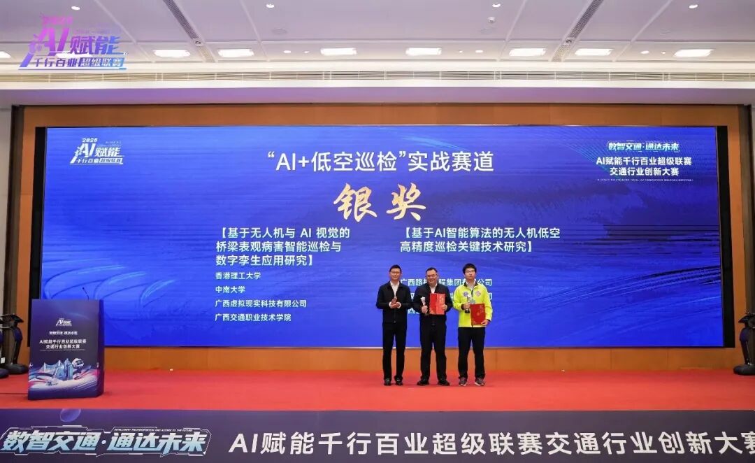 我校《基于无人机与AI视觉的桥梁表观病害智能巡检与字孪生应用与研究》团队获“AI+低空巡检”赛道银奖