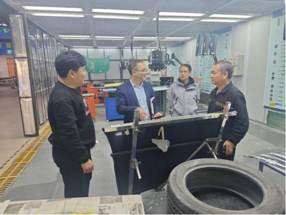 立项喜讯传来,校企双方迅速联动。柳州五菱新能源汽车有限公司技术总监黄好一行专程赴学院,与创新站核心骨干成员围绕博士创新站建设任务、专用车产教融合实践中心搭建、车路协同交通运输专用车研发中心建设等重点建设任务展开深度研讨。在调研学院实训基地期间,黄好总监结合企业产业布局与技术需求,对新能源专用车生产线的优化升级、实训场景的实战化改造等提出了一系列建设性意见,为校企后续合作明确了方向、细化了路径。