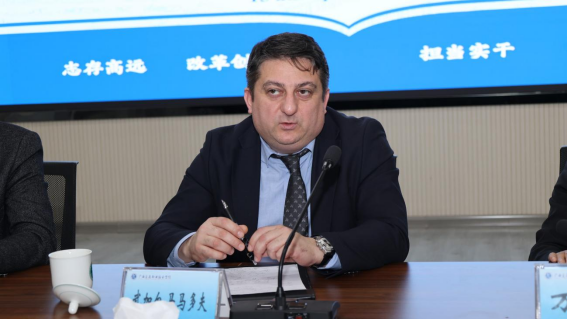 座谈会上,李文勇校长首先对代表团的来访表示热烈欢迎,对自治区教育厅的指导致以衷心感谢,并重点介绍了学校办学特色、专业建设成果及国际化办学成效。他指出,广西与阿塞拜疆分别作为“一带一路”在中国陆海衔接的关键门户和外高加索地区的十字路口,均以其独特的地理区位成为贯通东西、连接海陆的战略性交通枢纽,对促进区域互联互通与经济发展具有不可替代的节点作用。希望以此次考察为契机,促成学校与阿塞拜疆科学和教育部及相关院校、企业携手,在人才联合培养、实训基地共建、师生交流培训、教学资源共享等方面开展务实合作。