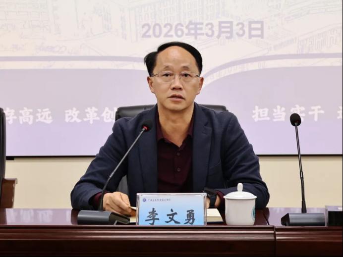 3月3日上午,学校2026年春季学期工作布置会在园湖校区图书馆三楼会议室召开,学校党委书记陈湘如主持会议并讲话,校长李文勇部署新学期学校总体工作。
