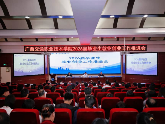 李文勇校长对今年就业工作作出明确部署,强调要锚定高质量充分就业核心目标,围绕关键任务狠抓落实,持续巩固“专业适配产业、共同体赋能就业、精准指导帮扶”的就业工作模式。以“434”就业工作体系为抓手,层层压实责任,确保各项部署落地见效;要深化高技能人才培养改革,聚焦技能培养与技术提升,以过硬专业能力服务学校双高建设;要持续深化访企拓岗行动,依托专业团队精准对接产业与企业需求,以市场导向反哺专业设置优化与教育教学改革;要做细做实就业服务保障,强化就业典型发掘与跟踪宣传,全力营造促就业、抓就业、稳就业的良好氛围,推动学校就业工作提质增效、再上新台阶。为交通强国建设输送更多“下得去、留得住、干得好”的技术技能人才,为谱写中国式现代化广西篇章贡献更多交院力量!