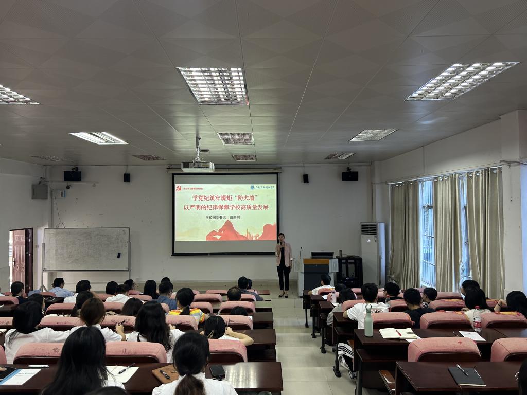 学校党委书记陈湘如以《学党纪筑牢规矩“防火墙”以严明的纪律保障学校高质量发展》为题,在昆仑校区学术报告厅带领大家回顾了党的纪律建设的历史成就,党纪学习教育的重大意义,深入阐述了习近平总书记关于全面加强党的纪律建设的重要论述的丰富内涵,系统阐释了《中国共产党纪律处分条例》(以下简称《条例》)“六大纪律”的主旨要义,对全校党员干部抓好党纪学习,推动形成遵规守纪的高度自觉,以严明纪律为学校高质量发展保驾护航提出要求。