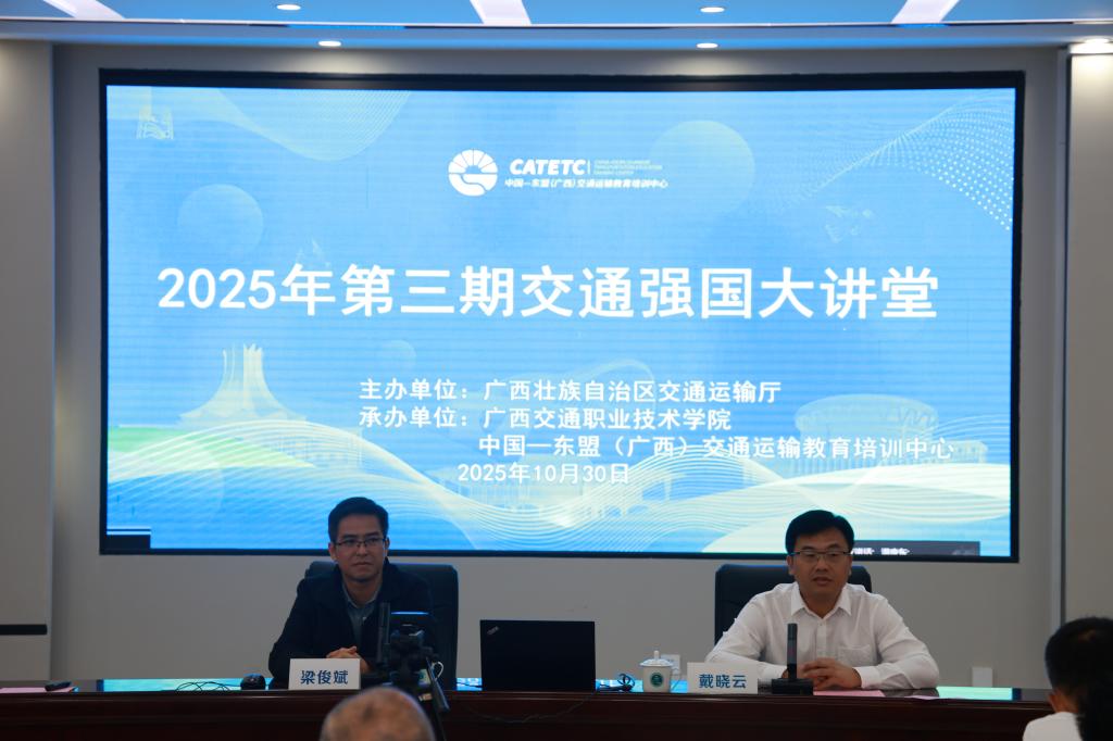 (科技与对外合作部、航海工程学院 讯 郑雅、黄昱锦/文)由自治区交通运输厅主办、我校承办的2025年第三期交通强国广西大讲堂于近日举办。此次大讲堂邀请了广西大学计算机与电子信息学院教授、博士生导师梁俊斌作专题讲座。讲座由我校副校长戴晓云主持。