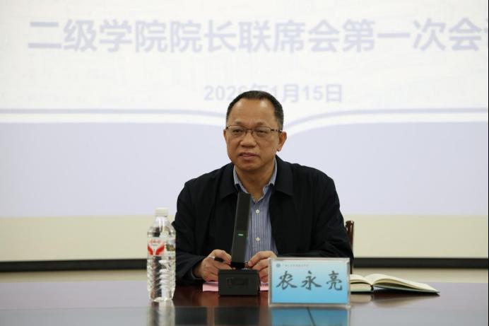 会上,广西建设教育协会会长农永亮介绍了广西工程建设类专业高校二级学院院长联席会成立背景、功能定位。他认为,在新时代背景下,广西经济社会发展对工程建设领域高层次、创新型、应用型人才提出了更高要求。院长联席会的成立为各高校相关学院搭建了一个宝贵的交流协作平台,希望各高校以此为契机,紧紧围绕国家战略和区域发展需求,在专业建设、课程改革、师资共享、实践教学、科研合作等方面深化合作,凝聚智慧,形成合力,共同推动广西工程建设类专业教育内涵式发展。