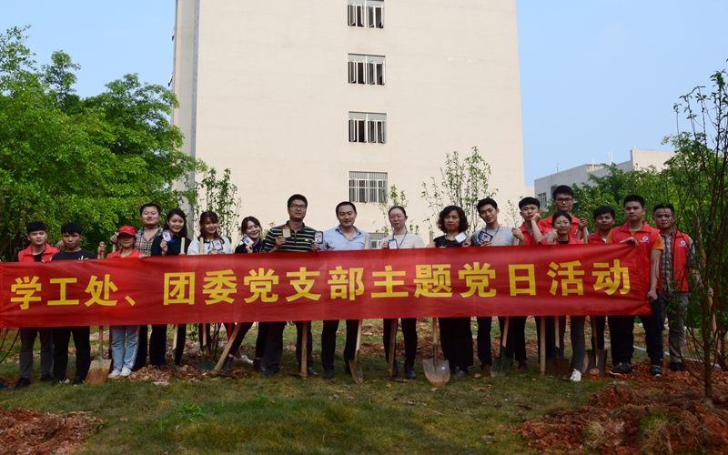 (学生工作处 团委 讯 张佺 张楗/文、图)3月29日,学生工作处(团委)全体党员及院学生会青年学生代表在四塘校区桃李园开展义务植树活动。