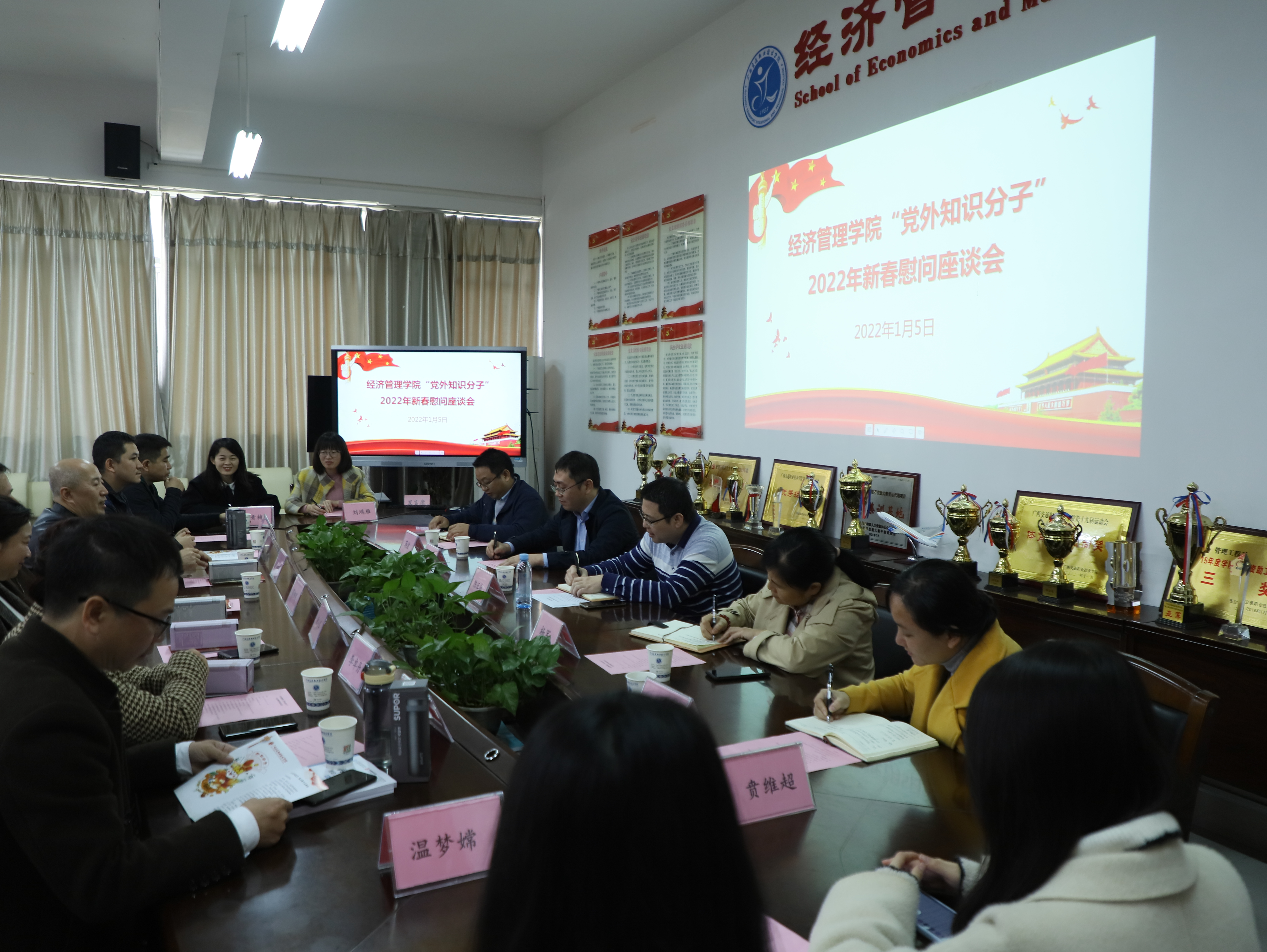 (经济管理学院讯 温梦嫦、韦珍妮/文)为密切同党外知识分子教师的联系,进一步调动党外知识分子积极性,建言献策,凝聚共识。1月5日上午,我院在管理楼316会议室召开党外知识分子2022年新春慰问座谈会。学校副校长陈正振、学院院长杨军、党总支部书记曹斌、党总支部副书记蒋波、学院副院长马赛及党外知识分子教师代表和学院支部代表出席参加此次座谈会。