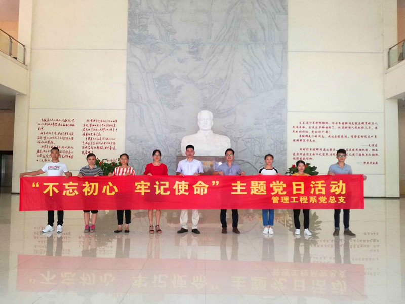 (管理工程系讯马赛/文 陈飞霞吴长苏/图)为深入学习贯彻党的十九大精神和习近平新时代中国特色社会主义思想,更好地发挥党组织的政治核心作用和党员的先锋模范作用,7月21日,管理工程系党总支组织党员教师和贫困受资助学生赴东兰县“韦拔群纪念馆”开展“不忘初心 牢记使命”主题党日活动。