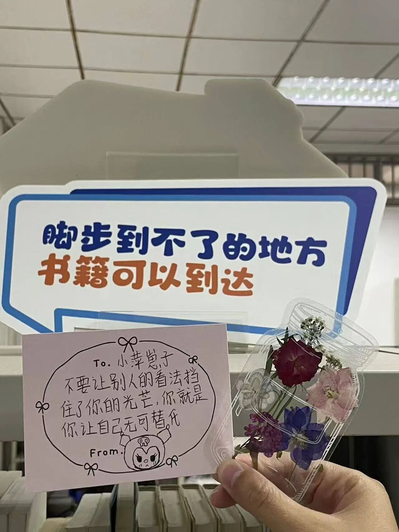 10月22日至23日,活动进入校园探索阶段。新生们利用课余时间,带着亲手制作的书签走进校园各个角落。有的将书签轻倚在图书馆书架旁,配文:“脚步到不了的地方,书籍可以达到。”有的与书签同框于操场落日余晖中,写道:“大学第一个秋天,光与影都刚好。”还有的捕捉到教室窗边的一缕阳光,留言:“愿三年如书签,夹住每一寸温暖时光。”