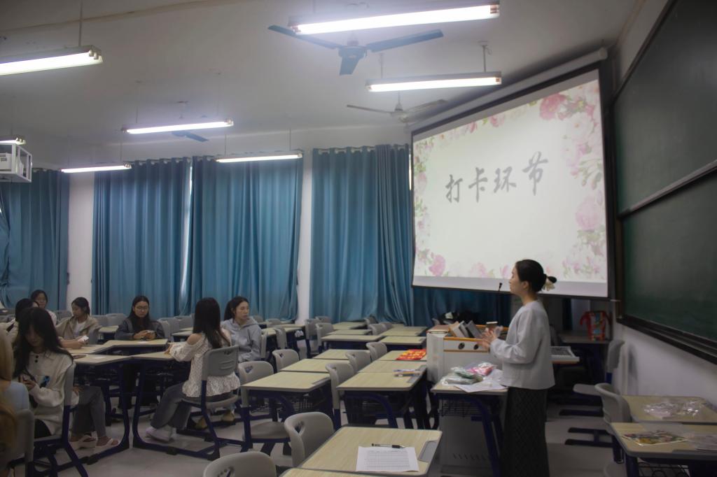 校园打卡,发现美好。活动的最后,伍轩仪老师在温馨的氛围解读了后续的校园打卡环节,鼓励同学们从指尖的创作走向身边的探索,让书签成为发现校园之美的眼睛