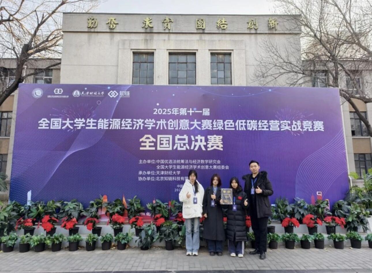 12月5日至6日,第十一届全国大学生能源经济学术创意大赛绿色低碳经营实战赛在天津财经大学举行,由市场营销专业李娜、卢湘怡、覃佩玲三位同学,李倩、薛豪两位老师担任指导的代表队斩获全国一等奖,在全国100所高校的强强比拼中脱颖而出,充分展示了我院学子的数字经营素养与创新实力。