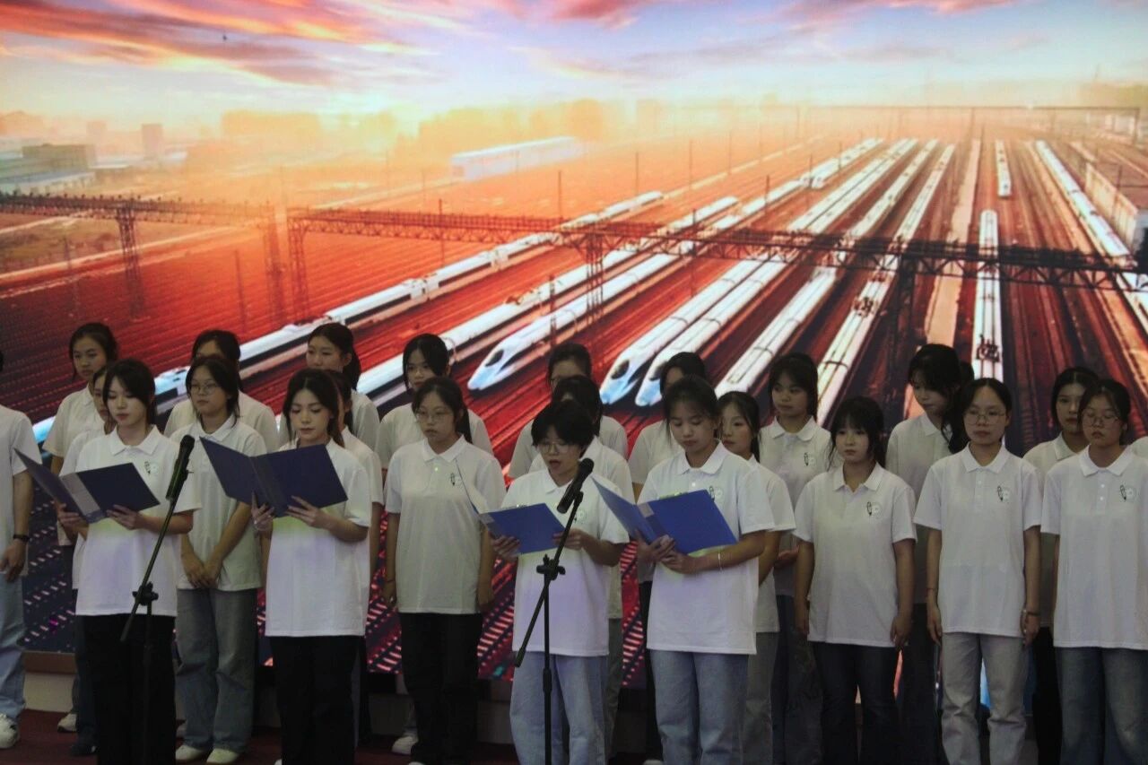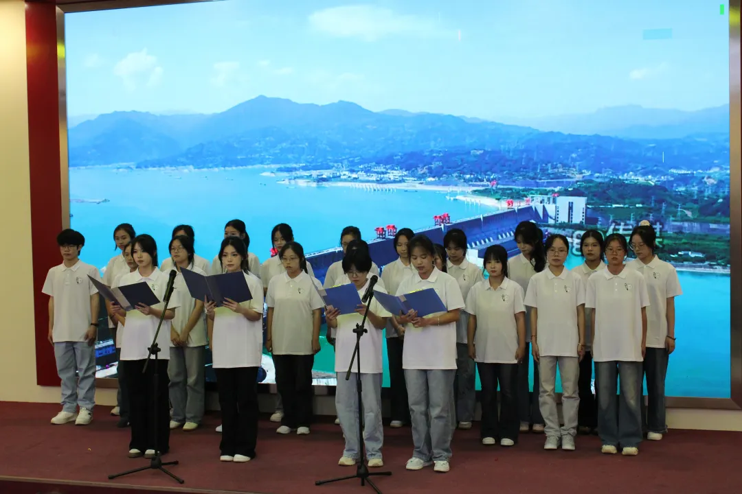 第三篇章潮涌新程·共赴山海以家国情怀与新程期许为核心,将晚会情感推向高潮。朗诵《我的祖国》字字赤诚,抒发新时代青年对祖国的无限热爱与责任担当。《我和我的祖国》旋律响起,全场师生齐声合唱,浓浓家国情怀在报告厅久久回荡。合唱《时间煮雨》《小美满》温情收尾,在舒缓旋律中寄托对过往的回望与对新年的美好期许。