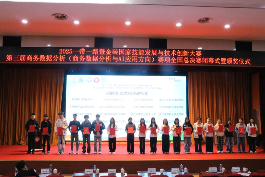 10月26日,2025一带一路暨金砖国家技能发展与技术创新大赛之第三届商务数据分析(商务数据分析与AI应用方向)赛项全国总决赛在山东圆满落幕。我院智慧运输管理团队派出的赵泓逸、莫经玉、王艳同学,凭借扎实的专业能力斩获全国二等奖。同时,我校获评优秀组织奖,指导教师郭子渝、胡明方获评优秀指导教师奖。