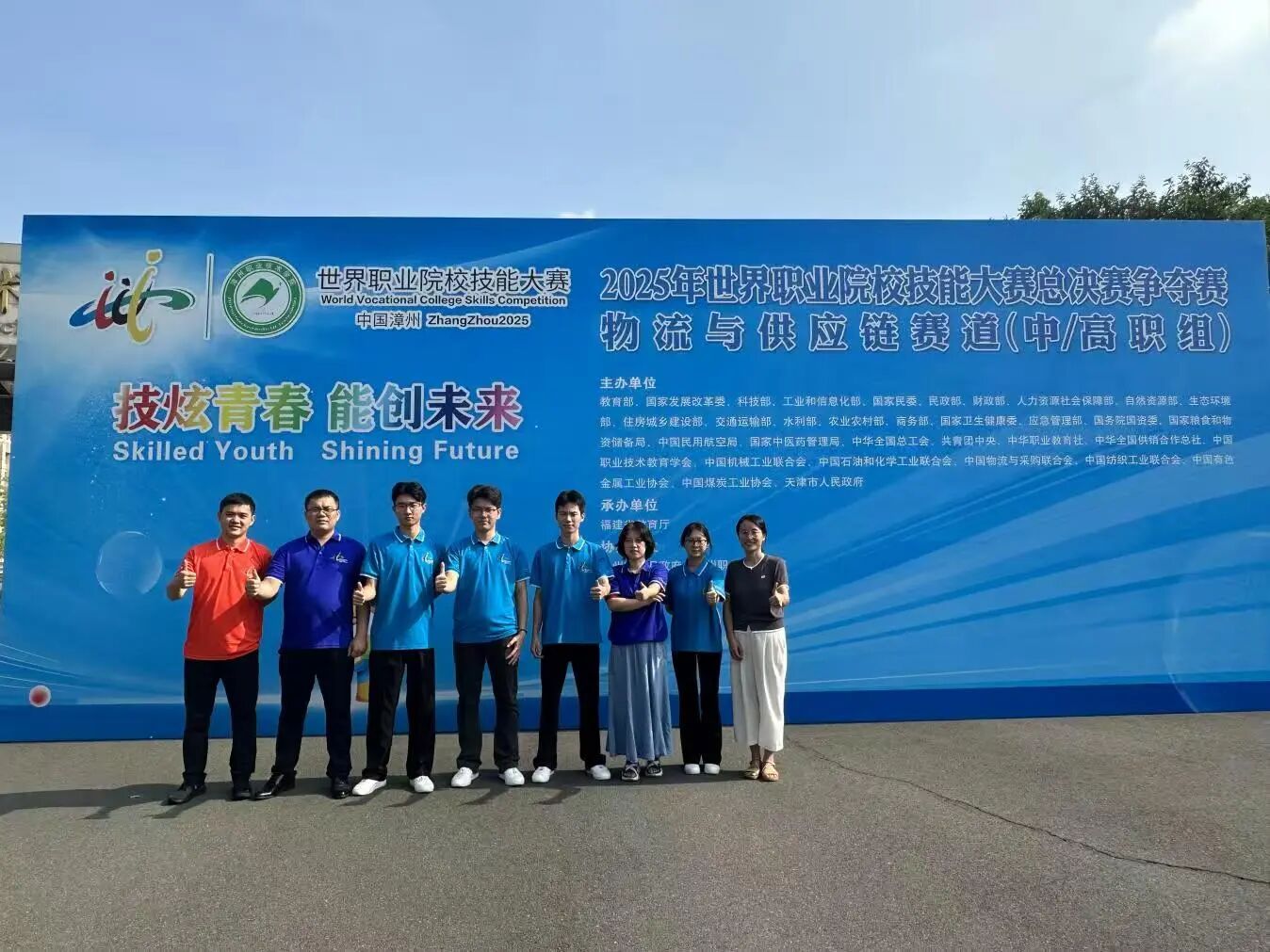 2025年8月26日至31日,世界职业院校技能大赛总决赛争夺赛“物流与供应链”赛道(高职组)落下帷幕,由我院现代物流管理专业学生白基乐、麻宇康、韦奕、黄贵柳组成的参赛队伍,在黄勇副院长(主持工作)的带队和指导教师高晓莎、甘洪潮、何婷的悉心指导下,历经两个月的艰苦训练,从全国131支参赛队伍中脱颖而出,成功获得该赛项铜奖。