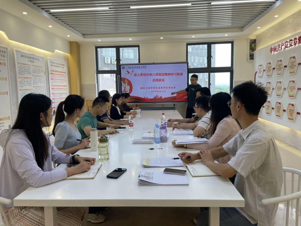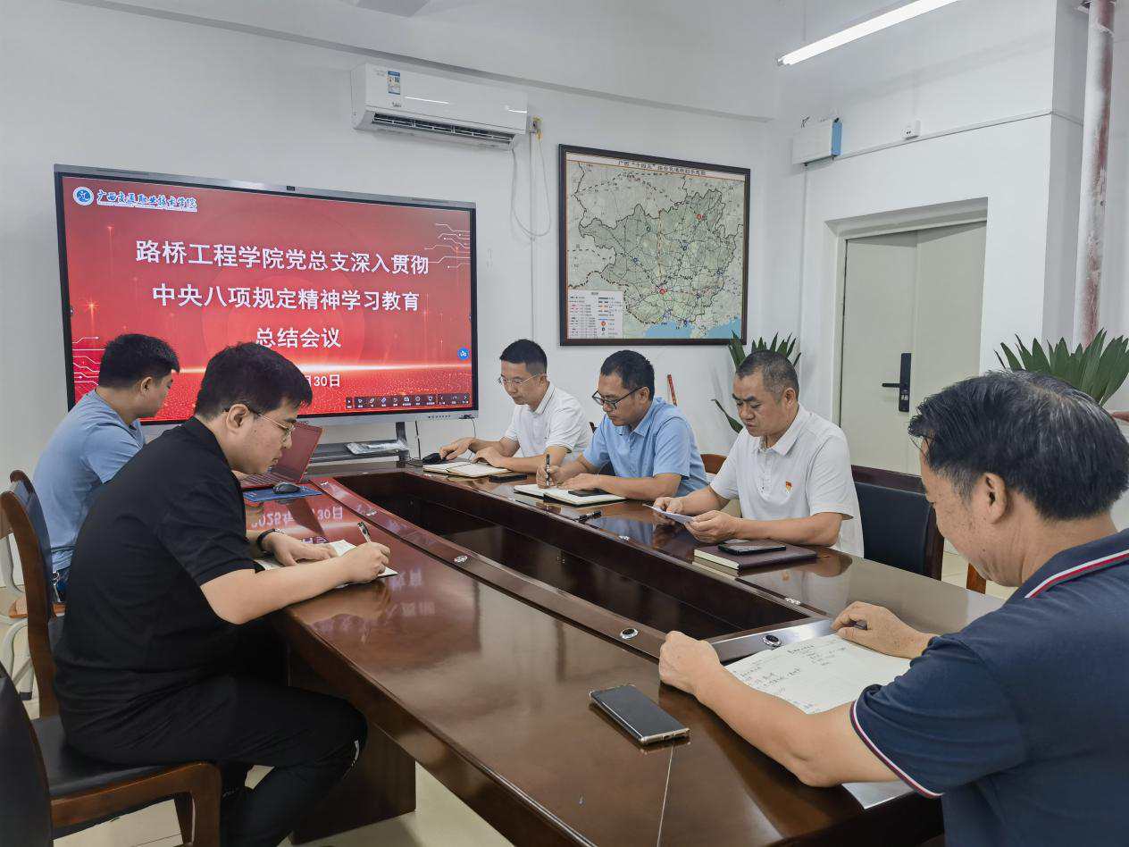 (路桥讯)9月30日,路桥工程学院党总支在路桥大楼会议室召开深入贯彻中央八项规定精神学习教育总结会,会议传达学习了习近平总书记关于深入贯彻中央八项规定精神学习教育的重要讲话和指示精神,以及中央、自治区党委党的建设工作领导小组会议精神,并对学院学习教育工作情况进行总结,对推进作风建设常态化长效化工作进行研究部署。学院党总支书记韦秋平主持会议并讲话。