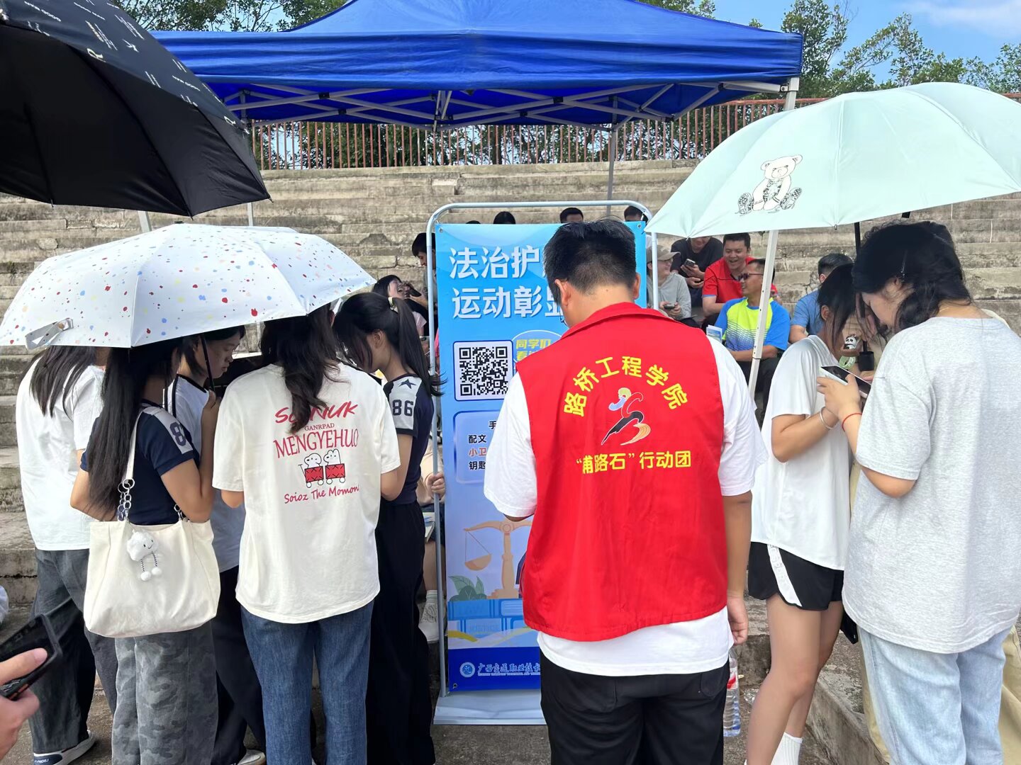 (路桥讯)10月19日,在路桥工程学院第二十四届田径运动会暨广西交通职业技术学院第二十三届运动会选拔赛火热进行之际,学院联合学校办公室开展了一场别开生面的“法治护航青春,运动彰显活力”主题法治科普活动。活动通过创新形式将法治教育与体育精神深度融合,吸引数百名师生踊跃参与,现场气氛热烈。