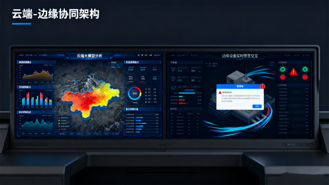灾害智能感知大模型。针对恶劣天气(雨雾、夜间)下图像质量差、边缘设备算力有限的问题,研发生成式视觉增强技术修复低质量图像,并构建“云端思考-边缘验证”协同架构——云端实现全局分析,边缘设备快速响应,灾害识别平均精度(mAP)≥75%,报警响应时间≤5秒。
