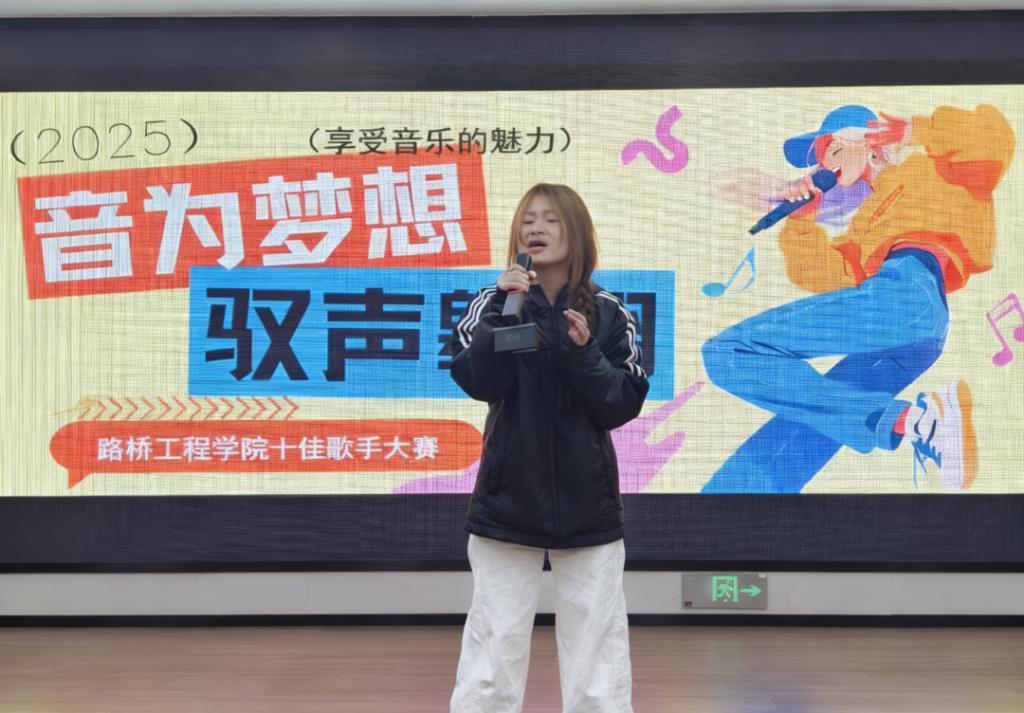 (路桥讯)歌声点亮青春,旋律唱响梦想。10月28日,路桥工程学院“音为梦响,驭声翱翔”十佳歌手大赛总决赛在路桥楼615圆满落幕。学院党总支副书记孔洋、辅导员代表及各年级学生代表共同到场,见证这场属于路桥学子的音乐盛典。本次大赛自启动以来,便受到全院师生的广泛关注,经过初赛的选拔,23位实力唱将脱颖而出,站上总决赛的舞台,用歌声传递青春力量,为现场观众带来了一场震撼人心的视听盛宴。