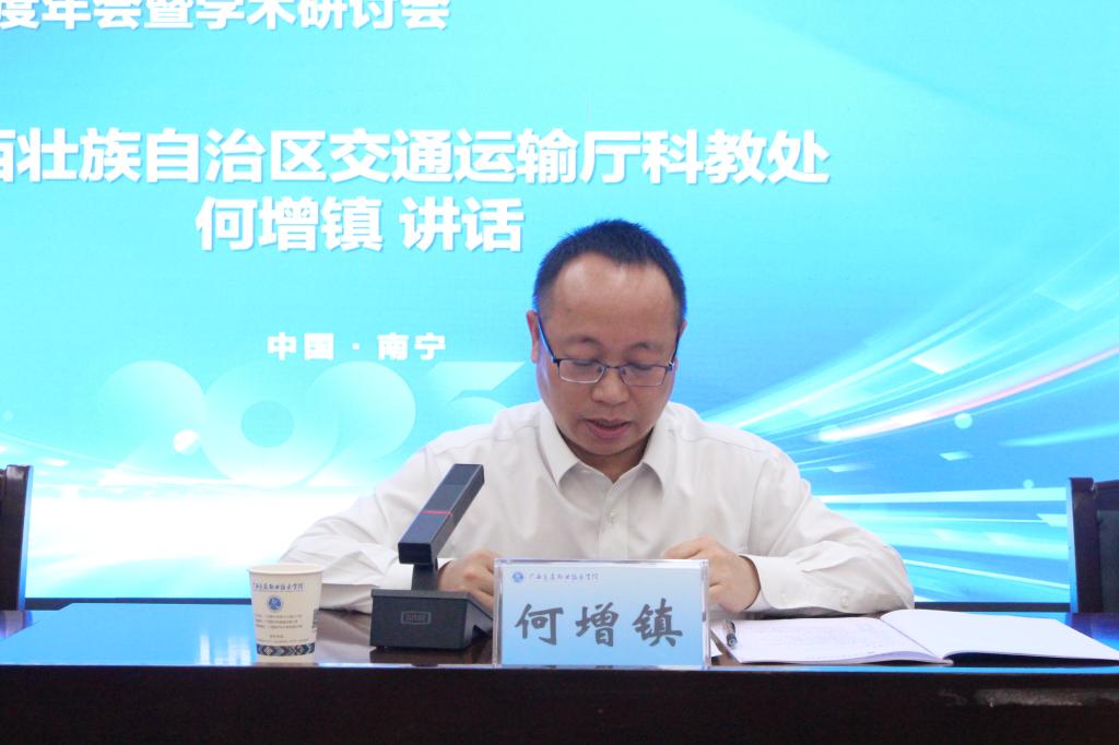 自治区交通运输厅科教处干部何增镇在发言中肯定了中心在过去一年内取得的显著成绩。他表示,自治区交通运输厅将继续支持中心的发展,希望中心能紧抓“交通强区”建设机遇,聚焦行业关键技术难题,加速成果转化应用,为广西交通运输事业的高质量发展提供坚实的科技支撑。