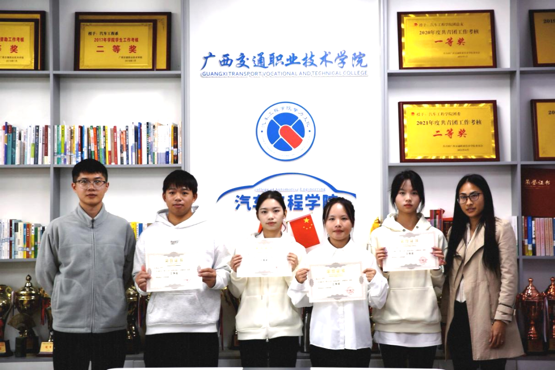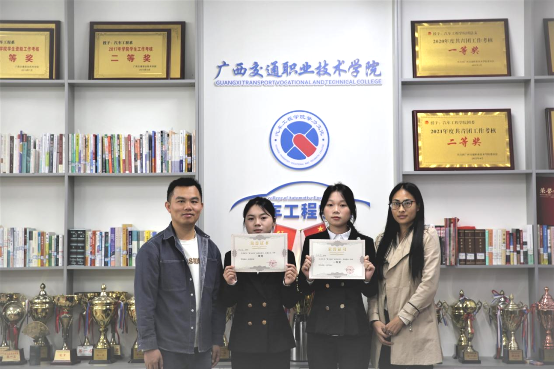 梁业灿副书记(左一)为一等奖获奖学生颁奖