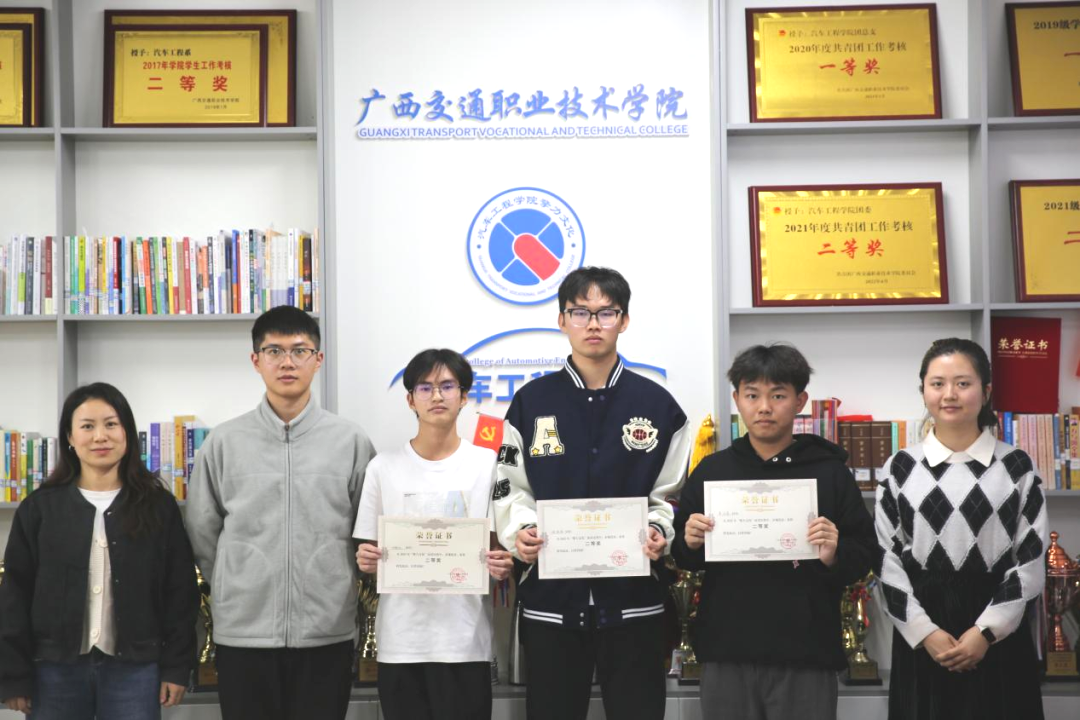 团委副书记戴涛(左一)为三等奖获奖学生颁奖