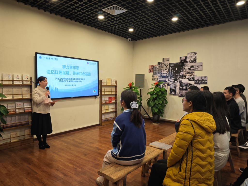 2025年12月16日,汽车工程学院党总支组织党员代表,前往南宁市红色工运教育体验馆,开展沉浸式主题党日活动。活动通过角色扮演、情境体验等创新形式,让党员们“穿越”回中华人民共和国成立前夕的南宁,亲身感受那段惊心动魄的护厂斗争历史,实现了党性教育与党史学习教育的深度融合。