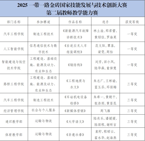 (教师发展中心 讯 邓维宇/文)近日,在2025一带一路暨金砖国家技能发展与技术创新大赛之第二届教师教学能力赛国内选拔赛中,我校派出的9支教师队伍斩获8个奖项...