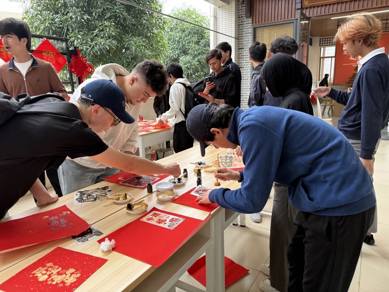 活动现场,师生们亲手体验拓印制作,从匀墨、铺纸到按压、揭纸,每一步都凝聚着对非遗技艺的敬畏与感悟。留学生们在指导下完成一幅幅富有中国年味的“福”“春”等主题拓片,不仅感受到了中华传统文化的魅力,也通过实践体会到文旅融合发展的创新理念。
