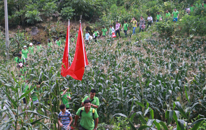 同时,为了纪念“红军长征胜利80周年”,体验红军长征的艰辛,提升党员理想信念和宗旨观念,社会实践团成员在驻村第一书记韦东耀同志的带领下负重“行军”近8小时,共18.1公里。