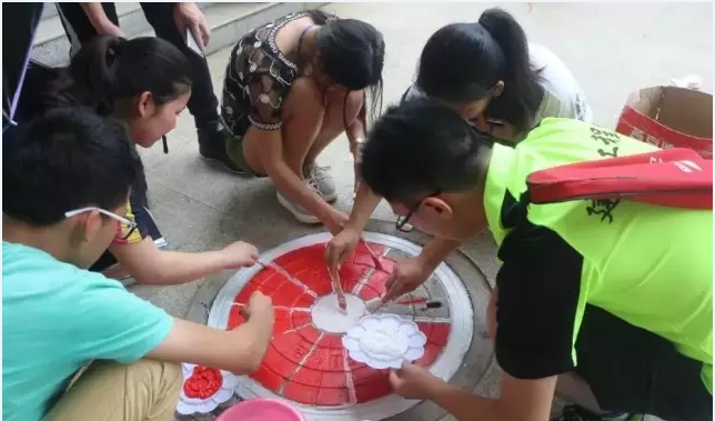 (建筑工程系讯 陈超基/文)2016年4月26日,建筑工程系团总支的同学 通过井盖涂鸦来宣传学生资助政策,喜迎“学生资助政策宣传月”的到来。