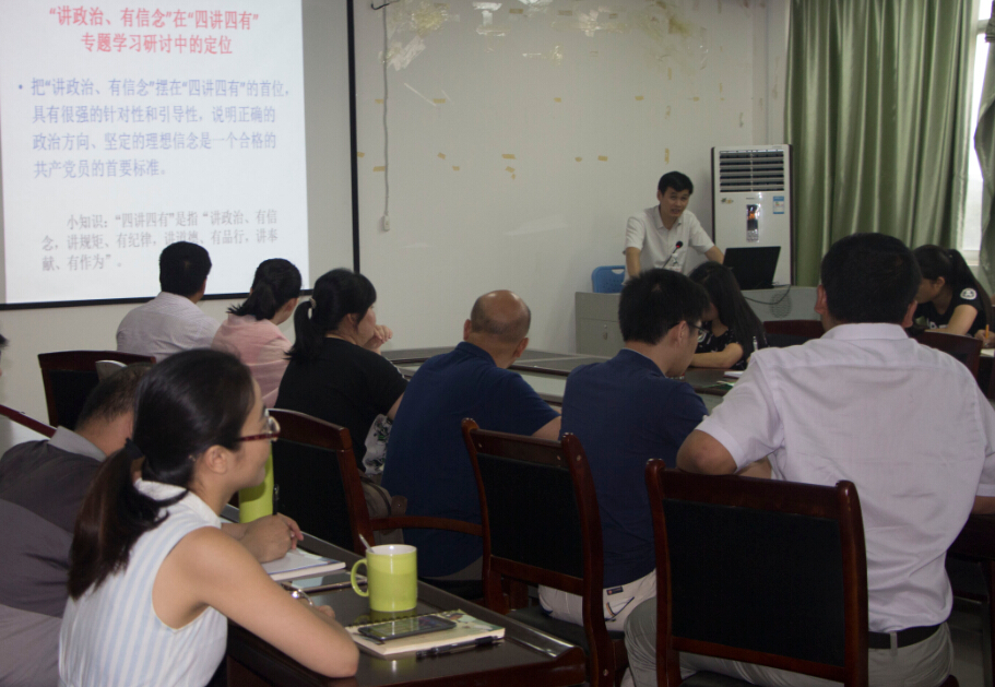 (建筑工程系讯 杨青/文 陈超基/图)6月21日下午,学院副院长韦红教在副楼406会议室给建筑工程系全体党员师生上题为“勤学真懂,善讲实干,做讲政治有信念的共产党员”的专题党课。建筑工程系党员师生认真学习学党章党规、学习习近平总书记系列讲话,争做合格党员。