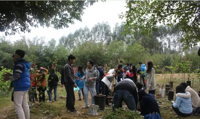 3月12日傍晚参与植树活动的师生在副楼406会议室进行了有关绿化家园的演讲。演讲结束后,负责人对本次活动的安排进行分工合作,在风景园林协会和建筑工程系学生干部的带领下全体人员共赴植树场地——学校桃花园。