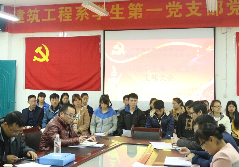 (建筑工程系讯 陈超基/文)2015年12月15日建筑工程系学生党建办在副楼会议室召开建筑工程系学生第一党支部支部大会,接收预备党员大会。建筑工程系党总支书记邱文成及学生第一党支部的师生参加了支部大会。